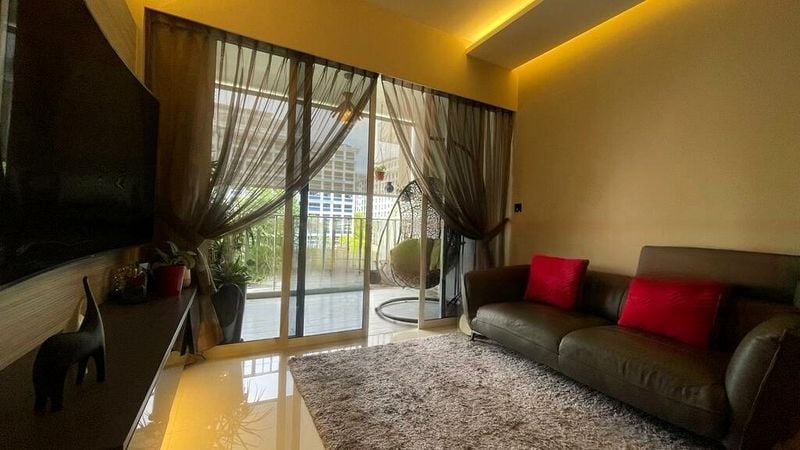 This well-maintained 2-bedroom, 2-bathroom unit boasts standout features including a spacious living room with balcony access, a modern dining area with a four-seater set, and a stylish wood-textured TV feature wall. The designer finishes throughout ensure a luxurious feel, making it an ideal home for those seeking comfort and style.