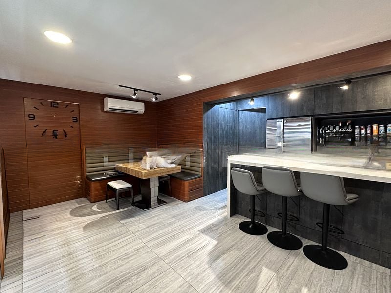 This well-maintained 3-bedroom unit boasts standout features including a built-in dining nook with bench seating, a luxurious bedroom with a padded headboard and mirrored wardrobe, and a secondary kitchen that enhances functionality. The layout is designed for both comfort and style, making it perfect for family living or entertaining guests.