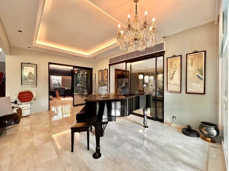 This well-maintained unit features a spacious layout with five generous bedrooms, including a cozy seating area in the master. The kitchen is a standout with its striking black and white diamond tiled floor, complemented by sleek white cabinetry and integrated breakfast table. Enjoy the convenience of a fully-furnished home, where every corner is designed for comfort and style.