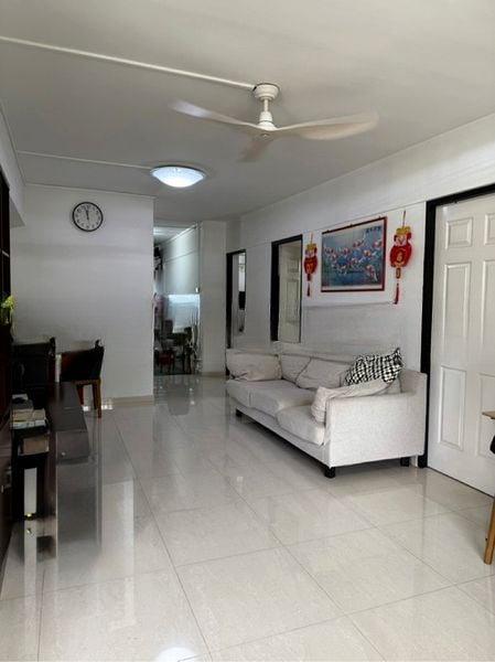 Step into a well-maintained 3-bedroom flat where simplicity meets functionality. The large format floor tiles reflect natural light, creating a warm and inviting ambiance. Enjoy the refreshing views of greenery from your living room, enhanced by ceiling fans that add a touch of comfort.