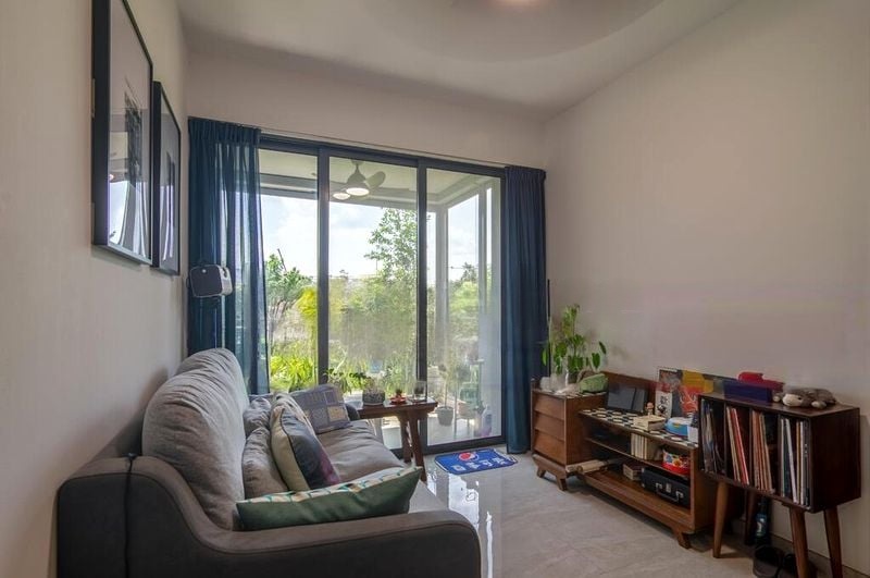 Step into a world of tranquility and modern elegance as you enter this beautifully maintained 2-bedroom unit at The Florence Residences. Bathed in abundant natural light, the open-concept living area features sleek tiled flooring and sliding glass doors that seamlessly connect to your private enclosed space (PES), offering serene views of the resort-style pool and lush greenery.