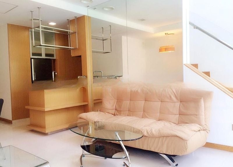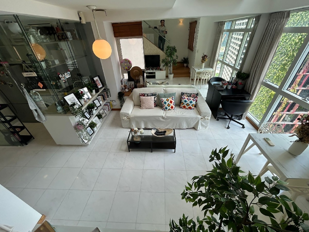 Step into a beautifully maintained duplex unit that exudes modern minimalist charm. The high ceilings and open-concept living room bathe the space in natural light, accentuating the sleek finishes and stylish furnishings. The loft sleeping area, framed by elegant glass railings, offers a unique perspective and a sense of spaciousness that invites relaxation and creativity.