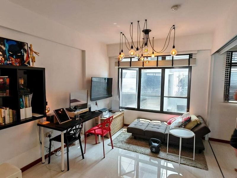 Step into this beautifully renovated HDB flat and be greeted by a modern minimalist ambiance that exudes sophistication. The polished white floor tiles reflect natural light, creating a bright and inviting atmosphere. Large windows adorned with blackout curtains offer a glimpse of the neighboring buildings while maintaining privacy.