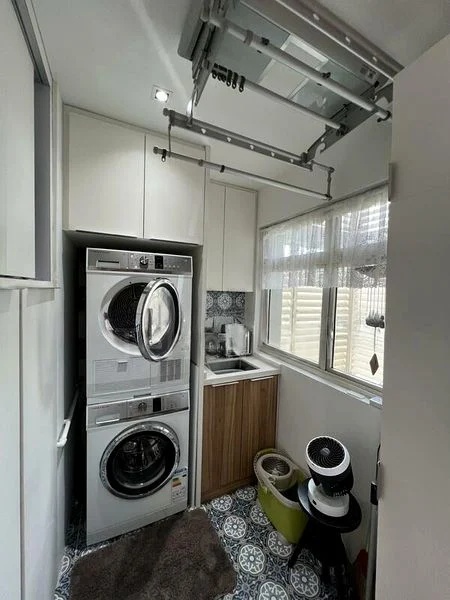 This unit features a well-thought-out layout, offering a comfortable living space for families. The bedrooms are equipped with built-in wardrobes and air conditioning, ensuring comfort year-round. The bathrooms boast tiled walls and modern fixtures, including a long vanity countertop and integrated sink, providing both style and functionality. With a wall-mounted TV in the bedroom and an overhead laundry drying rack, convenience is at your fingertips.
