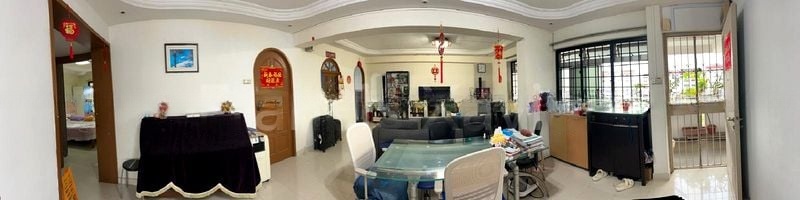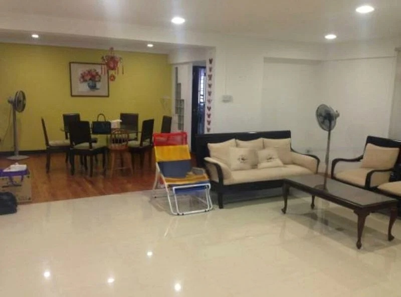 Step into a warm and inviting atmosphere where natural light dances across the spacious open-concept living and dining area. The large format floor tiles and recessed ceiling lights create a cozy ambiance, while the unobstructed views of lush greenery provide a serene backdrop for daily living. The floating TV console and glass block wall feature add a modern touch that enhances the overall aesthetic.
