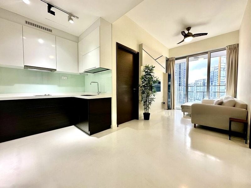 Step into a world of elegance and comfort as you enter this beautifully renovated unit at EON SHENTON. Bathed in natural light, the open-concept living room features polished stone flooring and a striking feature wall with indirect lighting, creating an inviting ambiance. Floor-to-ceiling sliding glass doors lead to a spacious balcony, offering unobstructed views of the vibrant city skyline.
