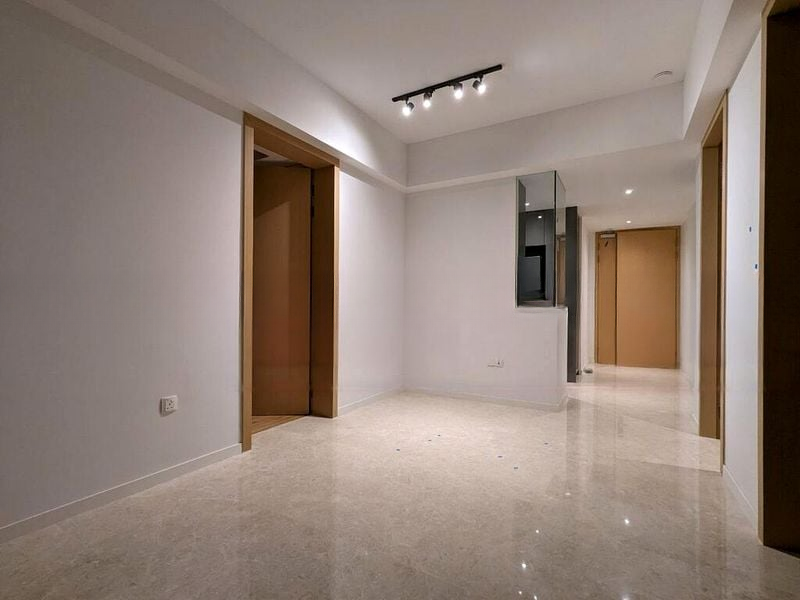 This well-maintained 2-bedroom, 2-bathroom unit features standout elements such as a modern L-shaped kitchen equipped with glossy grey cabinetry, an integrated Bosch refrigerator, and a built-in oven. The bathrooms boast luxurious rain showers and floating toilets, while the bedrooms are adorned with wood-look flooring and full-height wardrobes, ensuring ample storage and style. Enjoy the convenience of air conditioning and ceiling fans throughout, complemented by decorative track lighting that enhances the contemporary aesthetic.