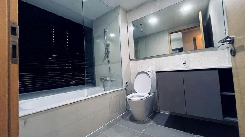 Step into this beautifully maintained 2-bedroom unit at NV Residences and be greeted by an abundance of natural light pouring through large windows, highlighting the polished floor tiles and the modern minimalist ambiance. The textured feature wall in the living room adds a touch of elegance, while the bay windows invite you to relax and enjoy views of the landscaped grounds and surrounding greenery.