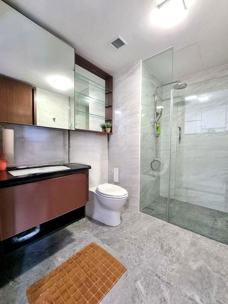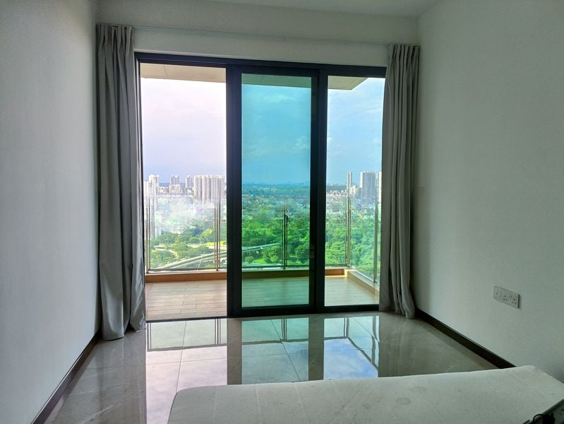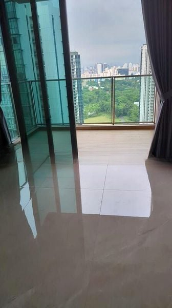 Step into a sanctuary of modern elegance at Normanton Park, where abundant natural light floods the space, highlighting the sleek finishes and minimalist design. The living room invites you with its direct access to a balcony that frames unobstructed views of lush greenery, creating a serene ambiance that soothes the senses.