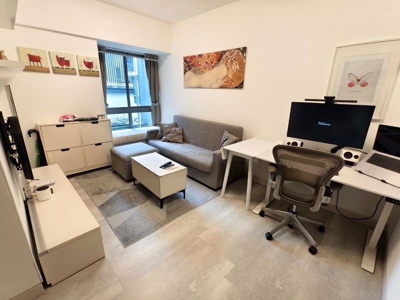 Step into this beautifully maintained 1-bedroom unit at Alexis, where modern minimalist design meets comfort. The moment you enter, you are greeted by a serene ambiance, enhanced by light wood-look flooring and a cozy bay window seat that invites you to relax and enjoy the lush greenery views outside. Natural light filters through the space, creating a warm and inviting atmosphere.