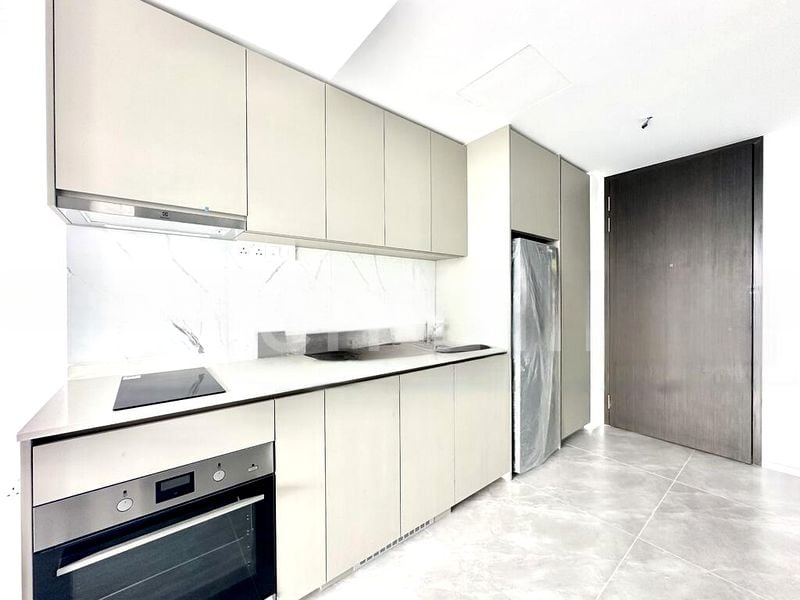 Step into a world of contemporary elegance as you enter this brand-new unit at CLAVON. The abundant natural light floods the open-concept living space, highlighting the exquisite grey marble-look floor tiles and the stylish marble-look backsplash in the kitchen. The black-framed glass partition adds a touch of sophistication, offering a seamless blend of privacy and openness while framing the urban views that inspire a vibrant lifestyle.