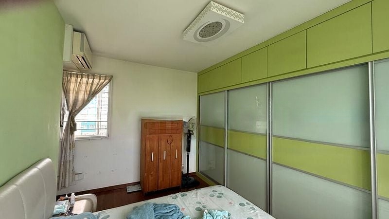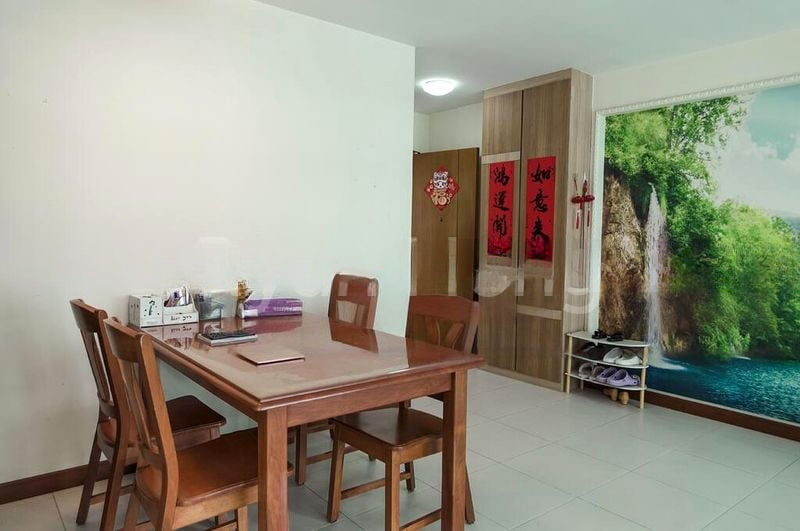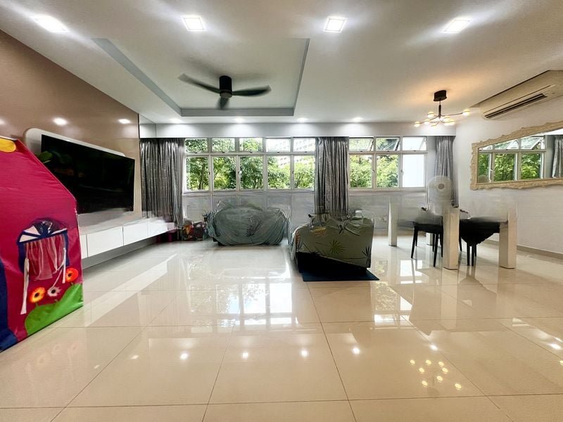 Step into a sanctuary of light and space in this beautifully renovated 3-bedroom flat at 315B Yishun Ave 9. The open-concept living area greets you with abundant natural light pouring through large windows, highlighting the sleek tiled flooring and elegant false ceiling with cove lighting. Enjoy serene views of greenery that enhance the bright and airy ambiance throughout the unit.