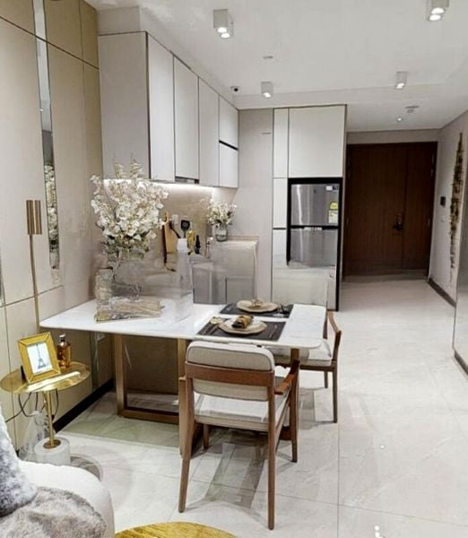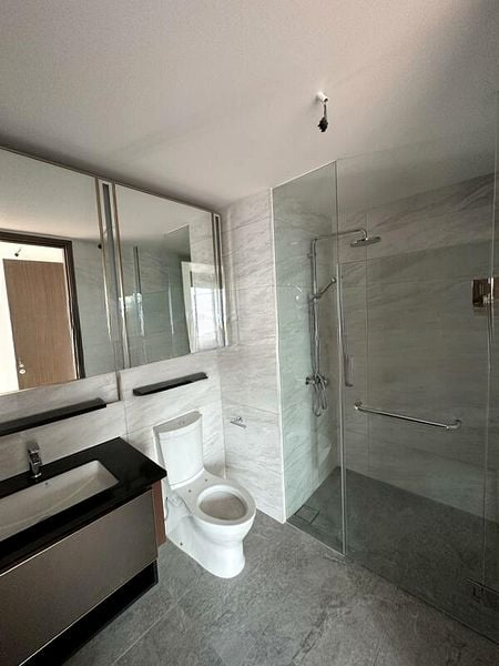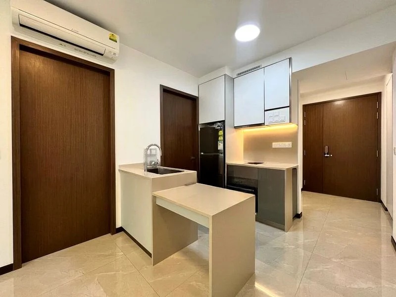 Step into this stunning 2-bedroom unit at Normanton Park, where modern minimalism meets elegance. The high ceilings and floor-to-ceiling curtains invite abundant natural light, accentuating the exquisite marble-look floor tiles that grace the living area. The ambiance is both inviting and sophisticated, creating a serene environment to unwind.