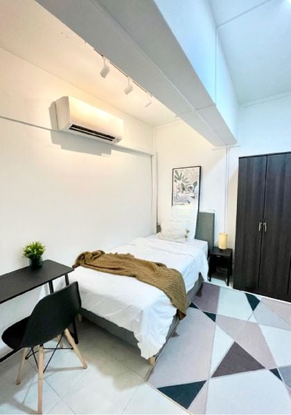 Step into a world of modern elegance as you enter this beautifully renovated unit at People's Park Complex. The open-concept dining area greets you with its white tiled flooring and stylish pendant lighting, creating a warm and inviting ambiance. Enjoy the stunning city skyline views from your bedroom, where natural light filters through grey blackout curtains, enhancing the serene atmosphere.