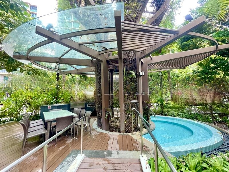 Step into a world of modern elegance as you enter this beautifully renovated unit at The Glades. Bathed in natural light, the open-concept living area features polished tile flooring and track lighting, creating a warm and inviting ambiance. Enjoy unobstructed views of lush greenery from your balcony, where the tranquility of the surroundings enhances your living experience.