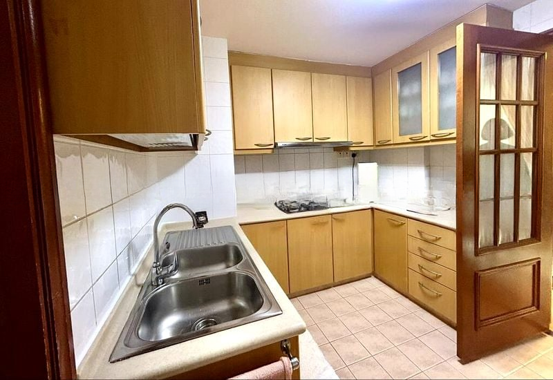 The well-designed layout includes a fully-equipped kitchen with a double stainless steel sink and light wood laminate cabinetry, ideal for culinary enthusiasts. Each bedroom is thoughtfully furnished, with light wood flooring and ample storage solutions, including a large L-shaped study desk in the study area. This unit combines functionality with comfort, making it a perfect family home.