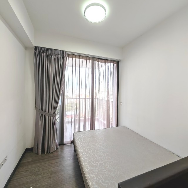 Step into a sanctuary of modern minimalist design, where abundant natural light floods the space, accentuating the sleek finishes and inviting ambiance. The unblocked city skyline views from the large balcony create an inspiring backdrop, perfect for relaxation or entertaining.