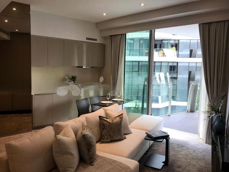 Step into a world of luxury as you enter this brand-new designer unit at Corals at Keppel Bay. Bathed in natural light, the expansive open-concept living and dining area features floor-to-ceiling windows that frame breathtaking views of the waterfront, greenery, and iconic cable cars. The ambiance is sophisticated, highlighted by marble flooring and designer furnishings that create an inviting yet opulent atmosphere.