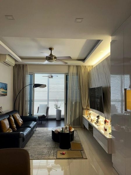 Step into a world of elegance as you enter this beautifully maintained unit at Forestville. The open-concept living room greets you with abundant natural light streaming through large windows, highlighting the ornate white furniture and classic chandelier. The ambiance is warm and inviting, perfect for both relaxation and entertaining, with urban views that add a touch of vibrancy to your everyday life.