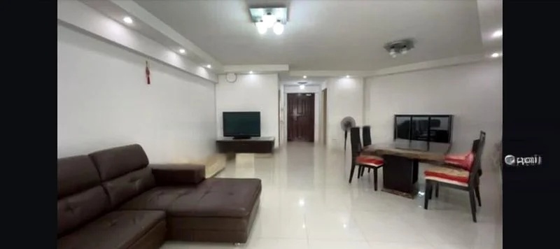 Step into a well-maintained 3-bedroom flat where functionality meets comfort. The open-concept living and dining area, adorned with white tiled flooring, invites natural light to create a warm ambiance. Enjoy the simplicity of modern living with a dark fabric sofa and a wooden dining set that complements the space beautifully.