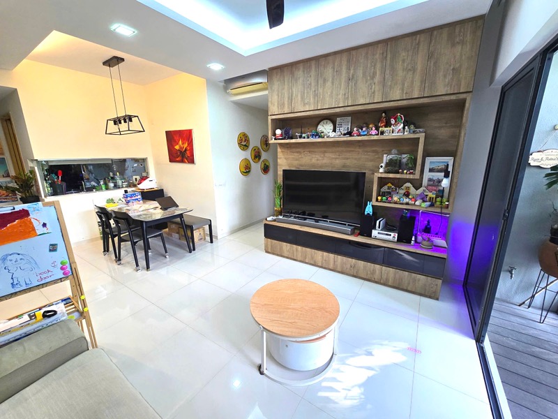 Step into a world of elegance and comfort in this beautifully renovated 3-bedroom unit at NV Residences. The moment you enter, you are greeted by an abundance of natural light cascading through large floor-to-ceiling windows, illuminating the open-concept living area adorned with polished white tiles and custom wood-look cabinetry. The bright ambiance is complemented by a dedicated study room and a balcony that invites you to enjoy serene greenery views.