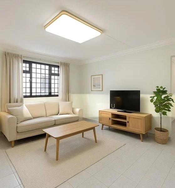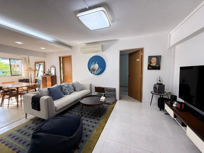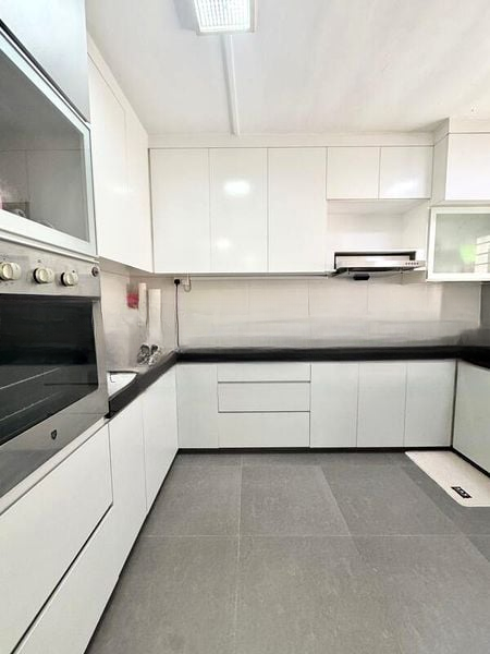 Step into this beautifully renovated 5-room flat and be greeted by a modern ambiance that seamlessly blends functionality with style. The polished tile flooring reflects the soft glow of the cove lighting from the false ceiling, creating a warm and inviting atmosphere. The living area, complete with a built-in TV console, offers a perfect space for relaxation and entertainment.