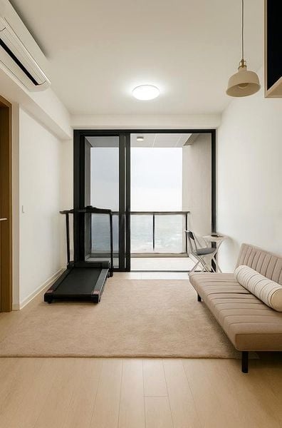 Step into this brand-new 1-bedroom condominium at Whistler Grand, where modern minimalist design meets breathtaking views. The moment you enter, you are greeted by an abundance of natural light that highlights the elegant marble-patterned wall tiles and the sleek finishes throughout. Enjoy unblocked vistas of the city skyline, swimming pool, and lush greenery from your high-floor balcony, creating a serene ambiance that invites relaxation.