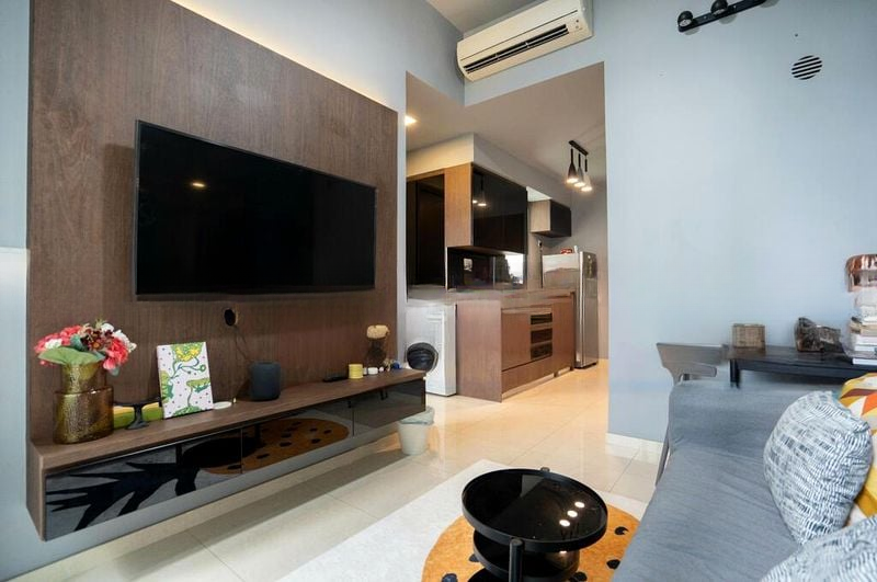 Step into a cozy oasis where abundant natural light floods through large sliding glass doors, illuminating the stylish finishes and warm ambiance of this well-maintained unit. The unique multi-level layout features a loft bed over the sofa, creating an inviting living space that seamlessly blends comfort with modern design. Enjoy picturesque views of the city skyline and lush greenery from your extensive balcony garden, complete with timber decking and a trellis for climbing plants.