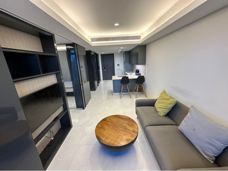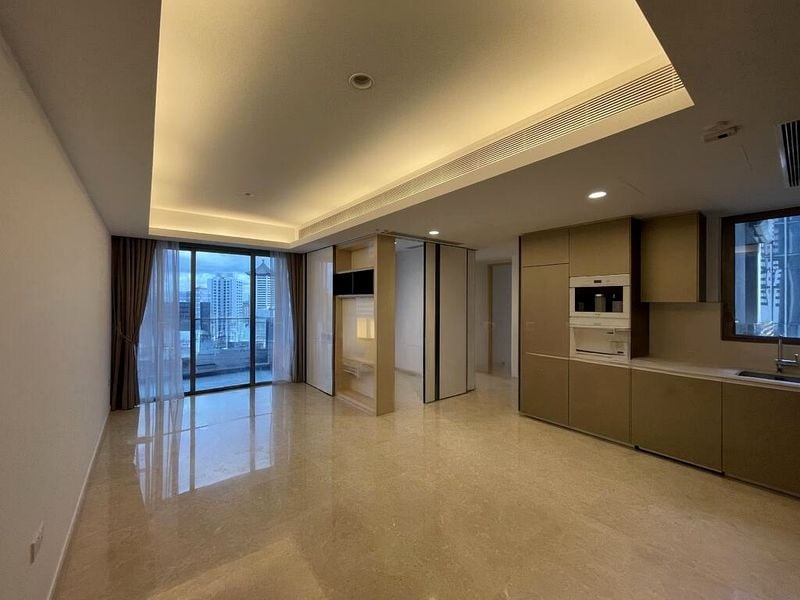 Step into a world of elegance as you enter this brand-new, fully-furnished unit at Cairnhill Nine. The open-concept living area greets you with its marble-look floor tiles and floor-to-ceiling windows, filling the space with natural light and offering captivating views of the urban landscape. The modern minimalist ambiance is accentuated by mirrored wall panels, creating an inviting atmosphere for relaxation or entertaining.