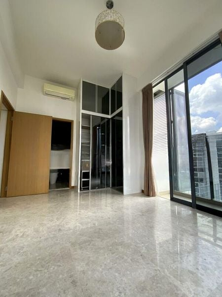 Step into a world of modern elegance as you enter this beautifully designed loft unit. Bathed in abundant natural light, the open-concept living area features high ceilings and stunning marble-look flooring, creating a spacious and airy ambiance. The glass-railed loft mezzanine offers a unique vantage point to enjoy breathtaking city skyline views, while the minimalist design invites a sense of tranquility and sophistication.