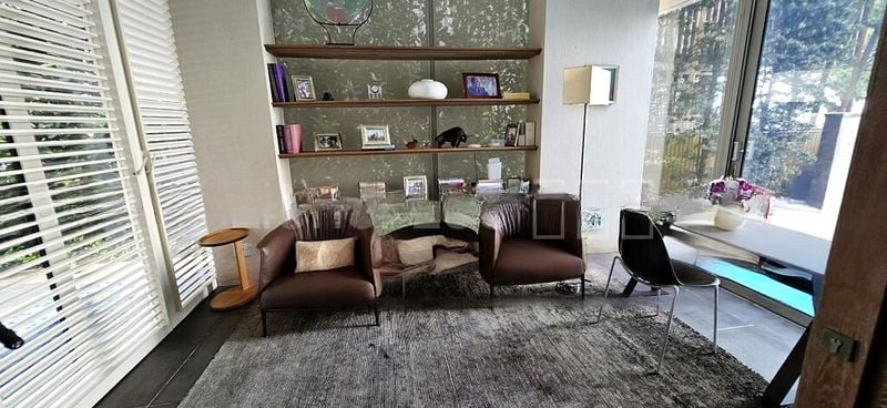 This spacious 5-bedroom, 6-bathroom residence boasts an impressive layout, featuring a luxurious living room adorned with a dark textured feature wall and a long modular sofa. The stylish bar area, complete with a dark island counter and a stunning chandelier, is perfect for entertaining. Enjoy seamless indoor-outdoor living with a private dock, wooden deck, and a lap pool that enhance the waterfront experience.
