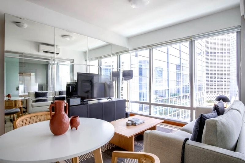 This well-maintained 1-bedroom unit features a fully-furnished layout with standout elements such as a walk-in closet, a sleek kitchenette with white cabinetry, and a bathroom equipped with a rain shower and frosted glass sliding doors. The highlight is the sauna, offering panoramic views through its glass walls, perfect for relaxation after a long day. With an efficient floor plan, this unit is designed for both comfort and functionality.