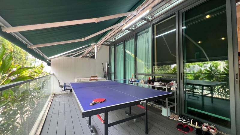 Step into a bright and airy sanctuary where natural light floods the space, accentuating the modern finishes and inviting ambiance. The large covered balcony, complete with timber decking and a retractable green awning, offers a perfect spot for relaxation or entertaining, while the glass block feature wall in the hallway adds a touch of elegance and uniqueness.
