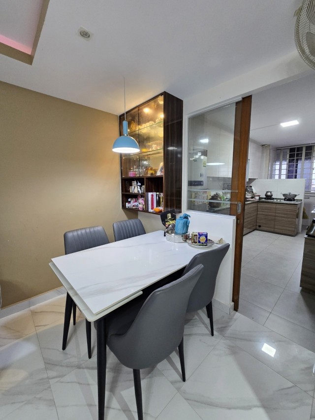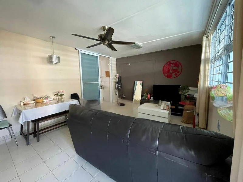 Step into this well-maintained 3-bedroom flat and be greeted by an ambiance that is both bright and airy. The polished herringbone parquet flooring complements the large windows adorned with blue curtains, inviting natural light to fill the space. Enjoy serene views of greenery from your living area, creating a peaceful retreat in the heart of Hougang.