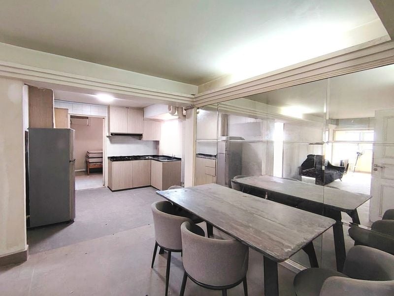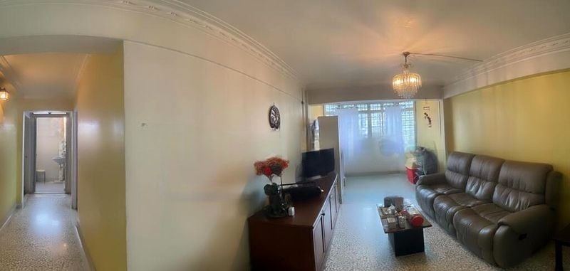 Step into this high-floor HDB unit and be greeted by the charm of terrazzo flooring that flows through the living area, complemented by cove lighting that creates a warm ambiance. The bay window invites natural light, framing picturesque views of the city skyline and surrounding greenery, while the white walls provide a clean canvas for your personal touch.