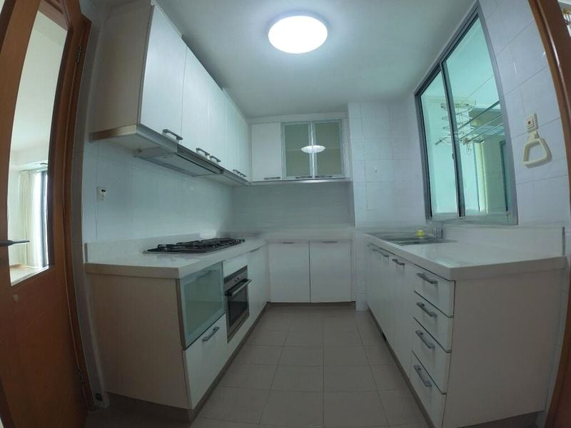 Step into a world of elegance as you enter this well-maintained unit at Caribbean at Keppel Bay. The abundant natural light floods the spacious living area, accentuating the light-colored floor tiles and creating an inviting ambiance. Large windows offer urban views, while the ceiling fans add a touch of comfort to the airy atmosphere.