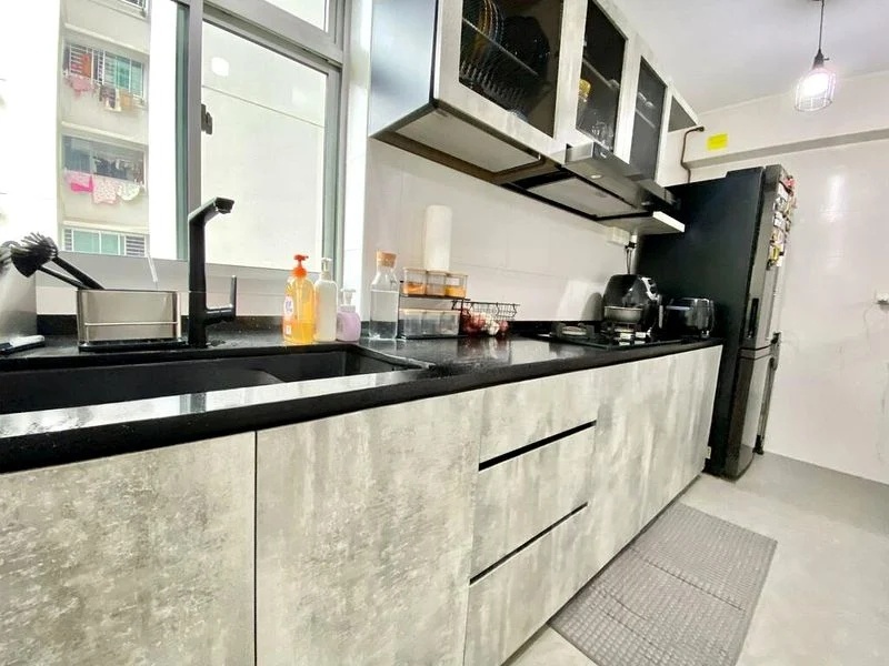 Step into this well-maintained 2-bedroom flat and be greeted by an abundance of natural light that fills the airy living spaces. The bright ambiance is complemented by views of mature greenery and nearby residential blocks, creating a serene atmosphere perfect for relaxation.