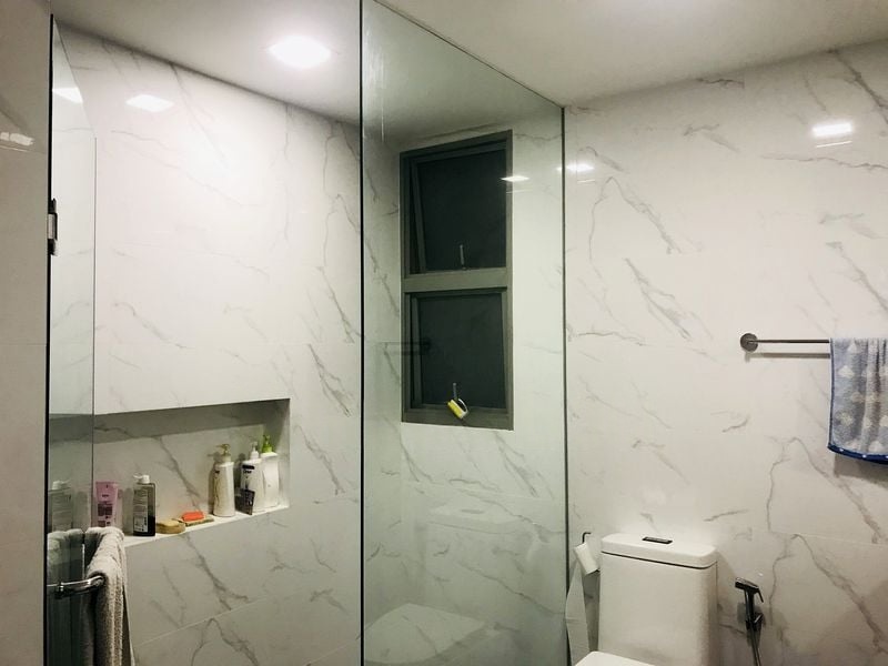 Step into a warm and inviting atmosphere at Aspen Heights, where the cozy ambiance envelops you as you enter. The living room, adorned with a ceiling fan and a wall-mounted TV console, is bathed in natural light, creating a perfect space for relaxation. The large glass-fronted display cabinet in the dining area adds a touch of elegance, while the wood-look flooring in the bedroom enhances the overall charm of this well-maintained unit.