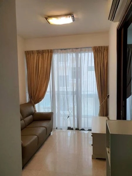 This well-maintained unit features a thoughtful layout, with a comfortable living area that includes a daybed sofa and a sleek white TV console. The bedroom, complete with a stylish wooden bed frame and soft beige curtains, offers a peaceful retreat. Fully furnished, this home is ready for you to move in and enjoy.