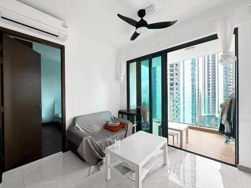 Step into a world of light and tranquility in this well-maintained 1-bedroom unit at Normanton Park. The polished tile flooring reflects the abundant natural light streaming through the full-height sliding glass doors, creating a bright and airy ambiance. Enjoy serene views of lush greenery and neighboring buildings from your private balcony, perfect for unwinding after a long day.
