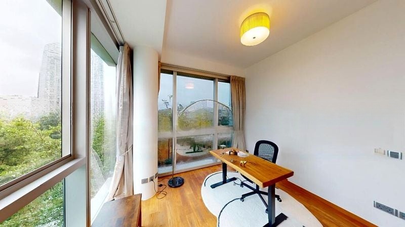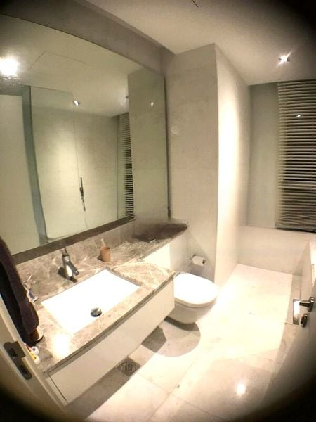 This well-maintained unit features an open-concept layout that seamlessly connects the living, dining, and kitchen areas. The gourmet kitchen boasts an island counter with marble countertops, complemented by minimalist grey cabinetry and an integrated wine chiller, perfect for entertaining. Retreat to the luxurious bathrooms adorned with full marble tiling, a rain shower, and a sleek wall-hung toilet, ensuring a spa-like experience at home.