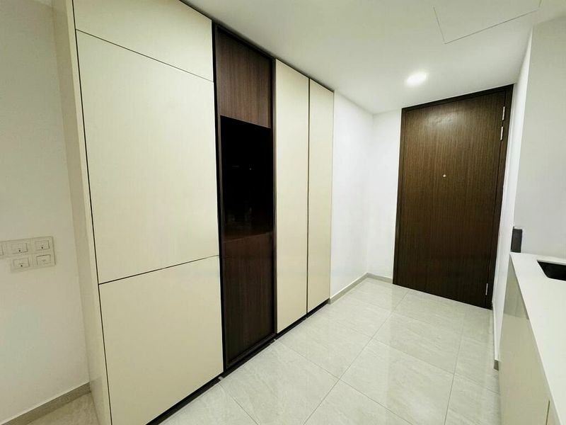 Step into this brand-new 2-bedroom unit and be greeted by an abundance of natural light pouring through the floor-to-ceiling windows. The polished tile flooring in the living room enhances the airy ambiance, while the balcony invites you to enjoy panoramic views of the city skyline and lush greenery.