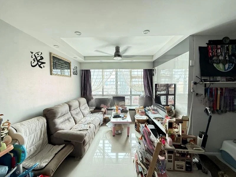 Step into this well-maintained 3-room HDB unit and be greeted by an inviting ambiance, where moderate natural light dances across the tiled flooring. The high floor offers unblocked views of the city skyline, creating a vibrant backdrop that enhances the living experience. The functional layout seamlessly integrates the living and dining areas, making it perfect for both relaxation and entertaining.