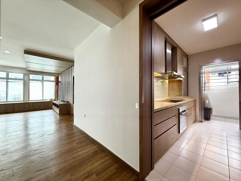 Step into a bright and airy sanctuary at Fernvale Link, where abundant natural light floods the space, accentuating the classic terrazzo flooring that flows seamlessly throughout the unit. The large windows invite stunning views of the urban neighborhood, creating a welcoming ambiance that feels both modern and timeless.