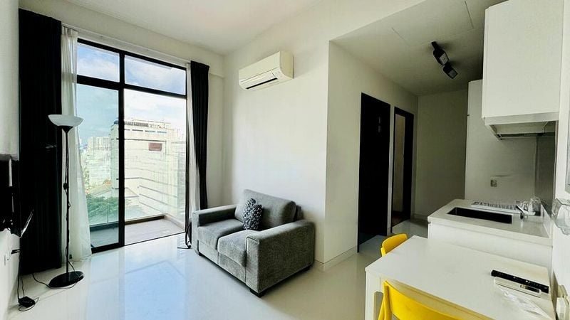 Step into a world of modern elegance as you enter this beautifully maintained 1-bedroom unit at Neem Tree. Bathed in abundant natural light, the open-concept living room features floor-to-ceiling windows that frame breathtaking urban views, creating an inviting ambiance that instantly makes you feel at home. The polished tile flooring enhances the contemporary aesthetic, making every corner a visual delight.