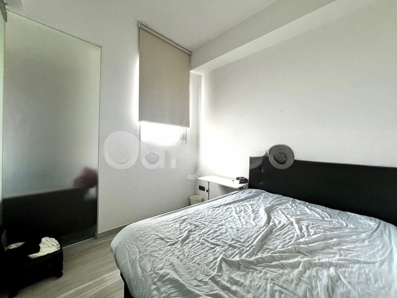 Step into a world of modern elegance as you enter this beautifully renovated 1-bedroom unit at Kallang Riverside. Bathed in natural light, the open-plan living area features a sleek marble-topped dining table and seamless access to a private balcony, where unblocked views of lush greenery and the city skyline await. The minimalist design, accentuated by track lighting and frosted glass sliding partitions, creates an inviting ambiance that feels both spacious and intimate.