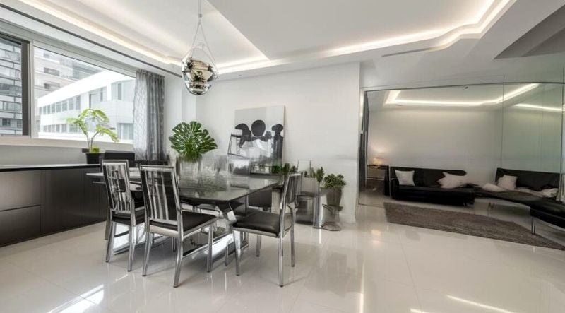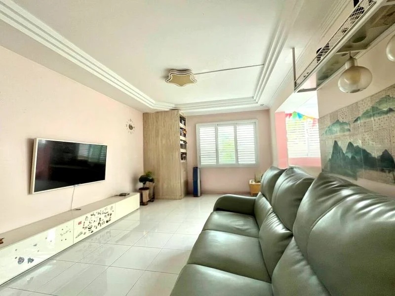 Step into a world of modern elegance as you enter this beautifully renovated HDB flat. The abundant natural light floods the open-concept living area, highlighting the plush area rugs and the sleek monochrome palette. Floor-to-ceiling windows frame breathtaking views of the city skyline, creating an inviting ambiance that is both chic and serene.