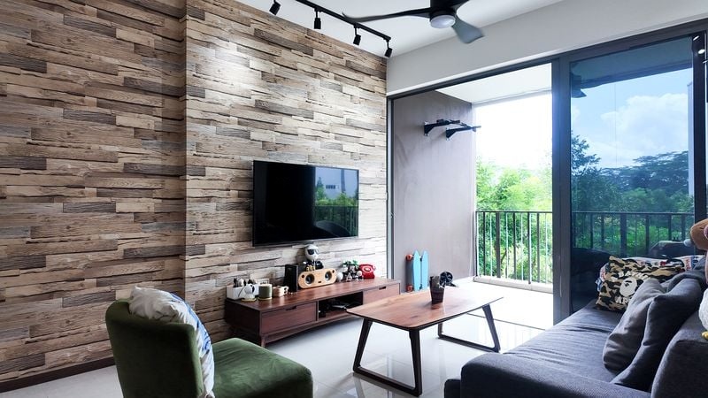 Step into this beautifully renovated 3-bedroom unit at Bellewoods, where abundant natural light floods the space, creating a warm and inviting ambiance. The cozy living room features a stunning wood-textured feature wall and track lighting, complemented by sliding glass doors that lead to a balcony with serene greenery views.
