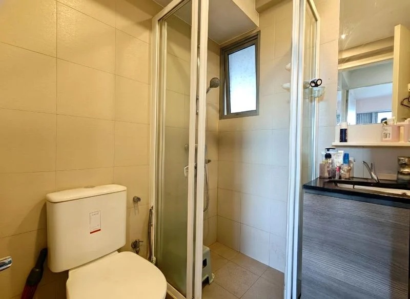 This well-maintained unit features three spacious bedrooms and two bathrooms, perfect for families. The galley kitchen is a chef's dream, equipped with a gas hob and double sink, while the dining area boasts a chic accent wall and a four-seater dining set, ideal for entertaining. Built-in full-height storage cabinets throughout provide ample space, ensuring a clutter-free environment.