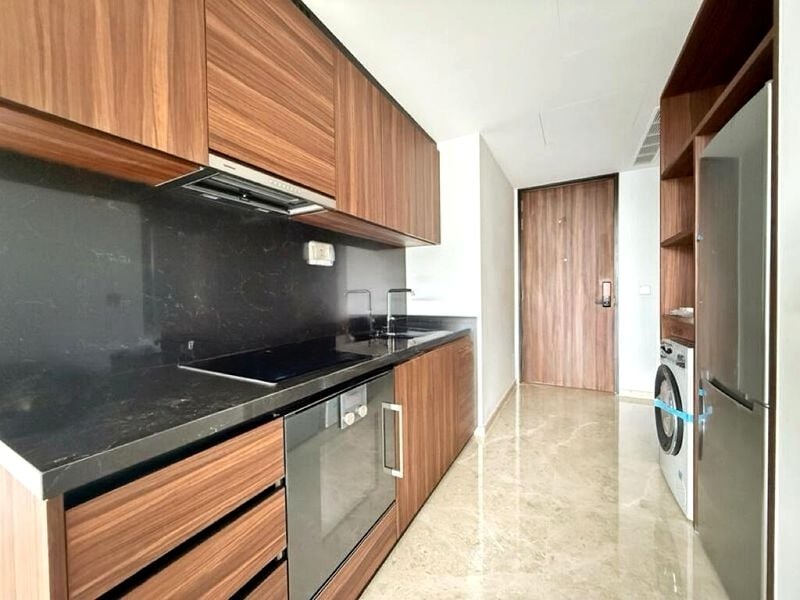 Step into a world of contemporary elegance with this brand-new unit at Pullman Residences Newton. The moment you enter, you're greeted by abundant natural light cascading over the marble-look flooring, creating a bright and airy ambiance. The sleek wood-look cabinetry in the kitchen complements the modern minimalist design, while the urban views of neighboring buildings add a vibrant backdrop to your living space.
